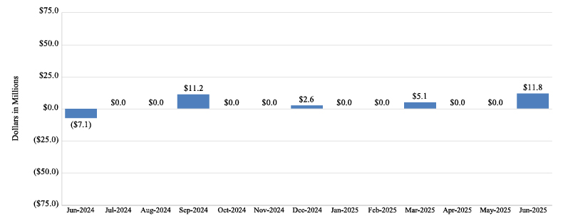 For the month ended June 30, 2025, the fund had a net income of $18.3 million. The fund recognized gross revenues of $51.9 million and total operating expenses of $21.8 million. The fund recognized an insurance loss expense of $11.8 million during the month of June 2025.