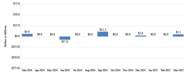 For the month ended March 31, 2025, the fund had a net income of $25.0 million. The fund recognized gross revenues of $51.6 million and total operating expenses of $21.5 million. The fund recognized an insurance loss expense of $5.1 million during the month of March 2025.
